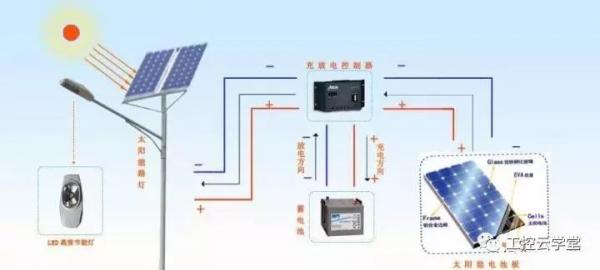 太阳能电池板→充放电控制器→蓄电池→路灯