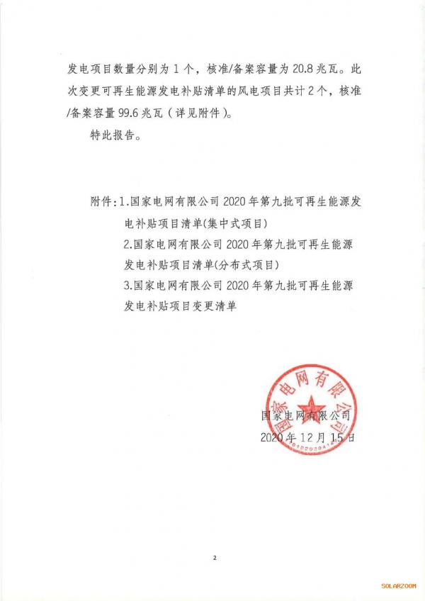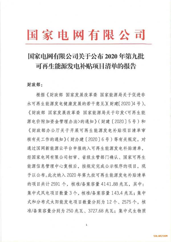 关于公布2020年第九批可再生能源发电补贴项目清单的公告