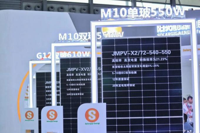 2020年以来超大尺寸高功率组件已逐渐成为大型地面电站的重点发展方向。本次展会阳光能源同步推出:功率535-550W的182尺寸MBB单晶双半片组件,功率为600-615W的210尺寸MBB单晶半片组件。组件版型可选用单玻或双玻,采用半片+多主栅+大尺寸硅片技术,有效减少内部电流和热损耗,提升组件功率输出,增加全生命周期内组件发电量。在近期激烈的国企组件招标竞赛中,也频频出现阳光能源斩获组件订单的身影,可见阳光强劲的业务实力。