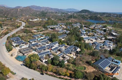 11月2日拍摄的河北省平山县西柏坡镇北庄村兆瓦级“光储”智能微电网示范工程项目中的屋顶光伏发电板