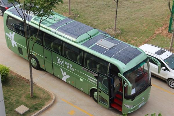 结合以上数据,看看刚刚在南京下线的国内首款太阳能大巴。这辆由金龙生产的大巴,车顶长11米,铺设了15平米的光伏板,理想情况下,这些光伏板每天可能能让汽车获得20度左右的额外电力,达到增程的效果。官方公布数据当中,也明确说明了以当前南京市的日照条件,可以增程30公里左右,成本上增加了10万元。
