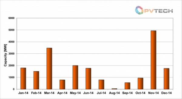 最初进行的2014年光伏产能扩张计划进度回顾涵盖了,2014年1月至11月的情况,因此,本文将先对12月份的状况进行分析,然后对全年状况进行总结。