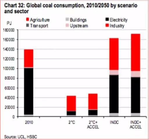 再者,每个国家都早已制定了“国家自定减排目标”(INDC),但是执行力都太差。汇丰银行对这个情况做过分析,看了之后您就会明白为什么煤炭行业会这么惧怕巴黎协议,为什么煤炭的支持者们总是进行一种宗教式的宣扬,说“煤炭才是最人类最有益的资源”。
