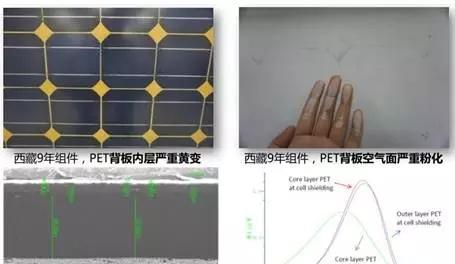 以上案例都是一些没有经过户外测试验证的背板材料所出现的问题,毫无疑问,如果电站投资商或者电站所有者能在选取组件之前就选择经过户外测试验证的材料,这些失效问题是可以在很大程度上避免的。