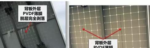PVDF背板的内层发黄现象在多个国家均有出现(中国,比利时,西班牙,美国和德国等),发生这种现象的组件户外使用时间少于5年,而且发生这种现象的组件来自多个不同的生产商。背板黄变说明聚合物已发生老化降解,意味着组件存在失效和安全隐患。鉴于PVDF背板发黄现象的恶劣影响,有投资机构表示,不会推荐有过发黄先例的组件厂商的产品。