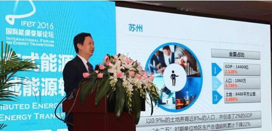 在“分布式能源与区域能源转型”分论坛上,江苏省能源规划研究中心专家组成员、协鑫智慧能源副总裁牛曙斌,以行业资深研究者和技术专家的身份,以苏州区域能源转型为样本,作了“创新绿色协调——苏州市区域能源转型研究”主题发言,并参加了“国内外区域能源转型示范区发展”的圆桌对话。牛曙斌介绍,苏州市已经将光伏、电子、材料、信息等一批新能源领军企业集群成为新增经济增长极,带动了相关科研、金融、服务等行业的发展,调整经济结构、实现产能升级、形成了良好的产业链与发展生态。