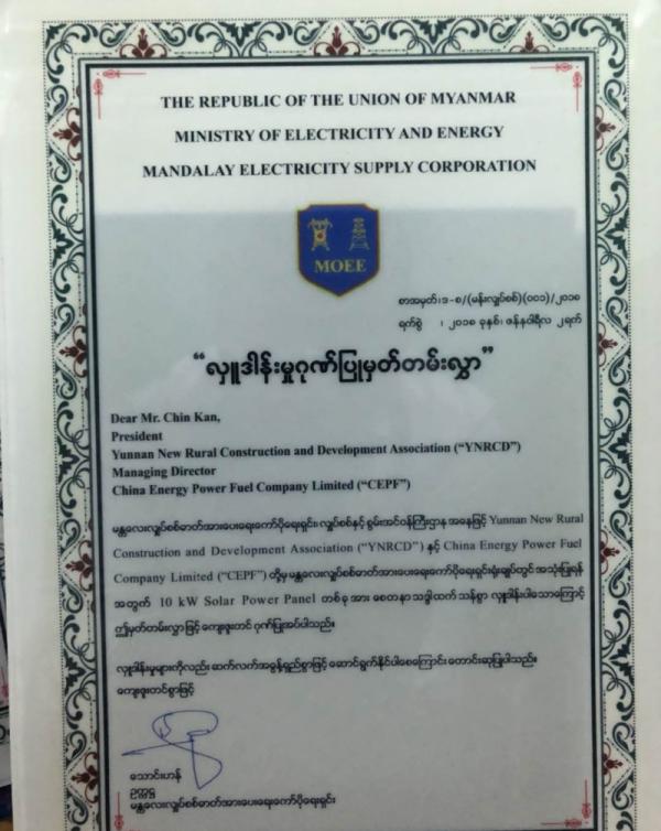 近日,由江苏赛拉弗、中能源云南电力科技有限公司联合捐赠的10kW光伏系统在缅甸能源部屋顶安装完毕并且成功运行。该捐赠项目可以为缅甸能源部提供70%的电力,这也是获缅甸政府官方认可的第一个光伏项目。