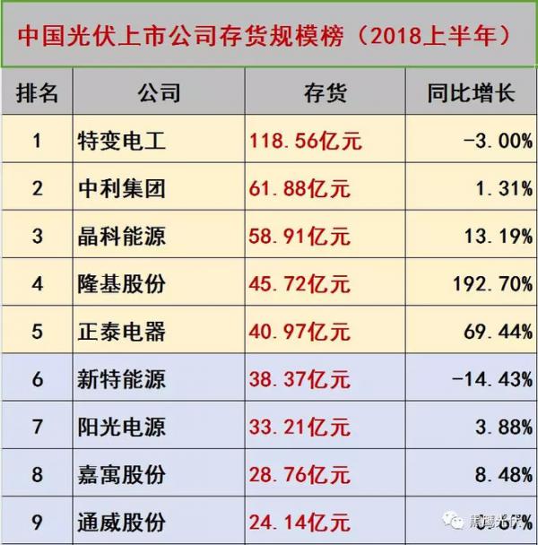 当然,不同企业间的业务架构、战略布局等都有所差异,肯定不能一概而论。尤其在“降风险”与“保增长”两者不可兼得的情况下,企业每一个重大决策背后的压力、辛酸苦涩也只有企业决策者自己最明白。首先看中国光伏上市公司存货规模榜: