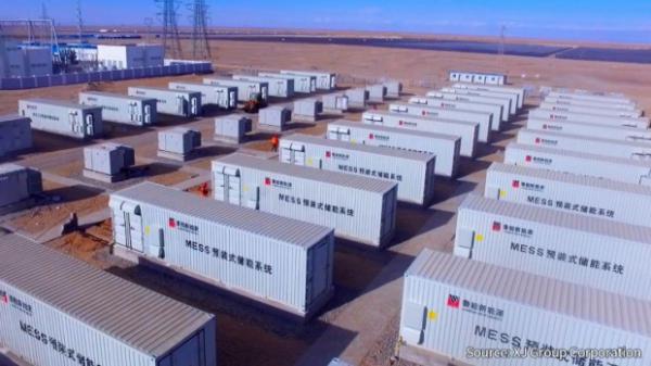 中国的一个大型示范项目结合了100MWh电池储能系统、400MW风电、200MW光伏和50MW集中光伏项目。