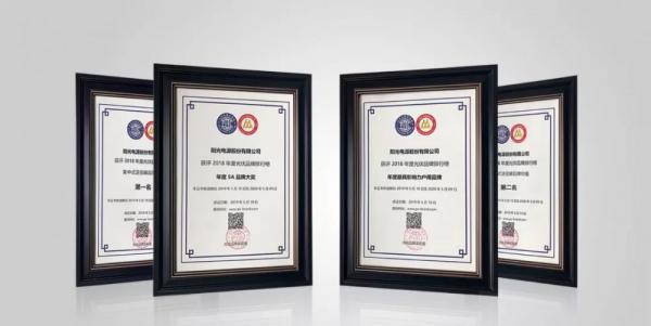 5月10日,“CPC2019第四届世纪光伏大会”暨“PVBL2018年度光伏品牌排行榜发布盛典”在上海隆重举行,阳光电源凭借出色的产品创新力和卓越的品牌影响力,揽获了“5A品牌”“最具影响力户用品牌”及“集中式逆变器”“组串式逆变器”品牌价值冠亚军四项大奖。