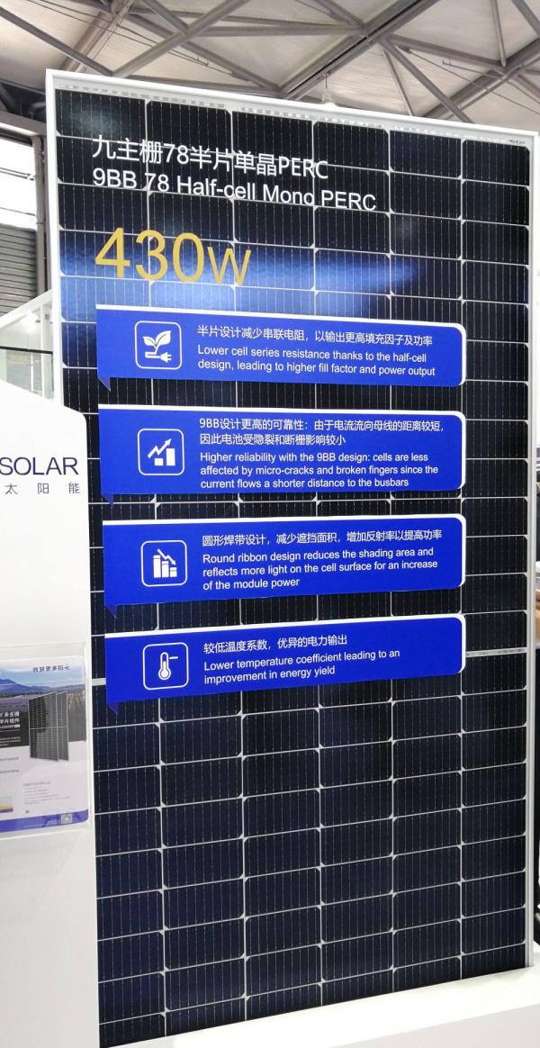 展会中,晶澳九主栅半片单晶PERC组件(JAM60S10-340/MR),N型FRC组件(JAM60S01-350/BC),单晶PERC叠瓦组件(JAM60S11-340/PR),九主栅66半片单晶PERC组件(JAM66S10-365/MR)等高效组件吸引了众多参展观众。