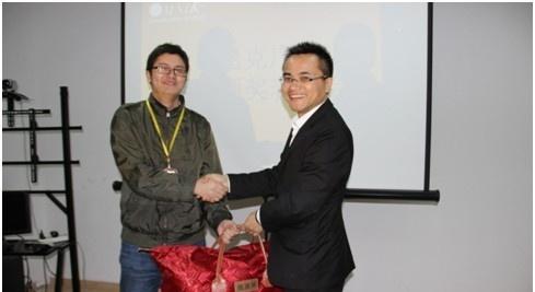 一等奖获得者汤建强接受销售总监刘人智先生的颁奖