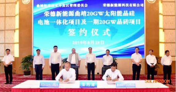 2019年8月28日,曲靖市举行2019年招商引资项目集中签约仪式,总投资达157.5亿元的荣德新能源曲靖20GW太阳能晶硅电池一体化生产项目涵盖其中。