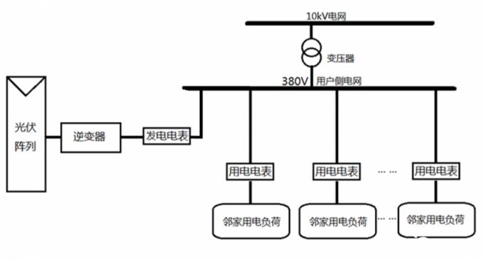 该并网模式的特点明显,光伏电站发出的电力可以首先满足自己的符合使用多余的电量可以卖给电网公司,以免造成浪费。但是这种模式的接入需要与电网公司协商好相关售电协议,兼顾双方的利益。由电网公司重新安装智能化双向电表,计量光伏电站的发电量和用户的用电量,并根据政策和协商电价支付或收取电费。通常要求安装自发自用余电上网的光伏电站的单位要自己消纳该电站所发电力的70%以上。