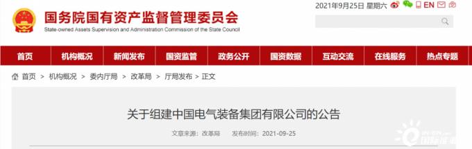 9月25日,中国电气装备集团有限公司成立大会在上海举行。同日,国资委网站发布了“关于组建中国电气装备集团有限公司的公告”。根据公告,国家电网有限公司所属相关企业、中国西电集团有限公司整体划入中国电气装备集团有限公司。中国西电集团有限公司不再作为国务院国有资产监督管理委员会履行出资人职责的企业。