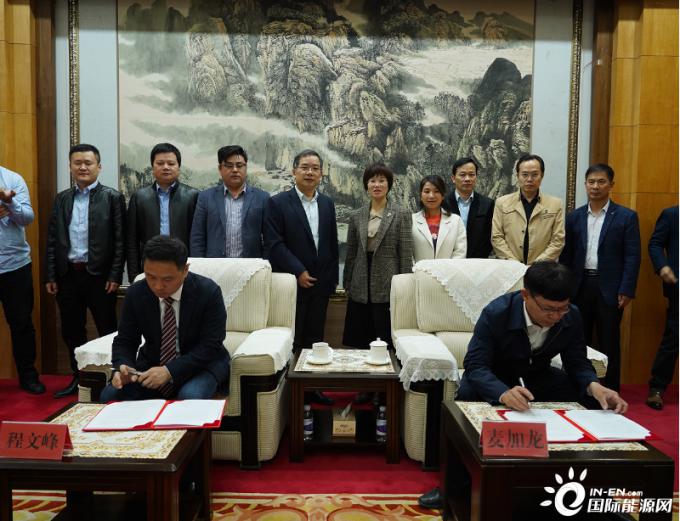 11月11日,江西公司与广西壮族自治区忻城县人民政府签订县域新能源战略合作协议,合力打造风光储一体化项目,江西公司规划发展部负责人、分宜电厂主要负责人、忻城县委书记、县委常委常务副县长共同见证签约。