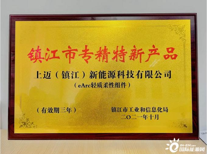 近日,镇江市工业和信息化局发布了《2021年度镇江市专精特新产品》,上迈新能源的eArc轻质柔性组件荣登榜单,体现了当地政府对上迈eArc轻质柔性组件的高度认可及肯定。