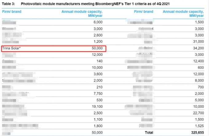 在彭博新能源财经(BNEF)最新发布的今年第四季度《光伏市场长期展望》中,天合光能继续上榜第一梯队(Tier1)光伏组件制造商名录,并以50GW的产能在上榜的35家企业中并列第一。