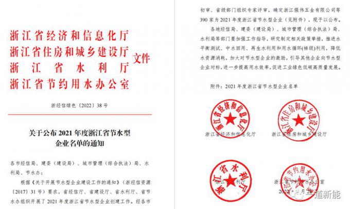 近日,浙江省经信厅、建设厅、水利厅、节水办联合公布了“2021年度浙江省节水型企业名单”,一道新能源科技(衢州)有限公司成功入选。