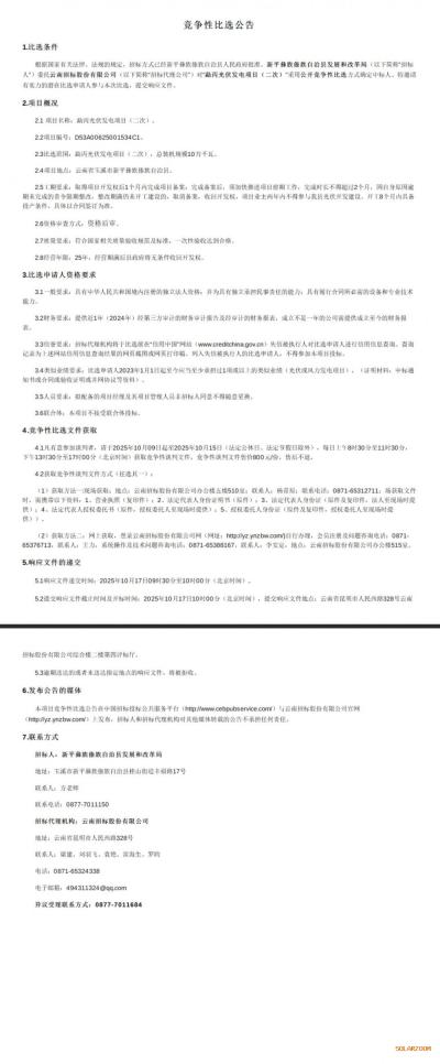 10月20日,云南勐丙光伏发电项目(二次)中标候选人公示,中电建(新平)新能源有限公司、华能(巢湖)智慧能源有限责任公司、华能保山清洁能源有限公司3家企业入围。