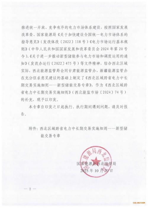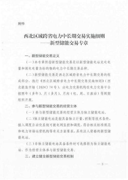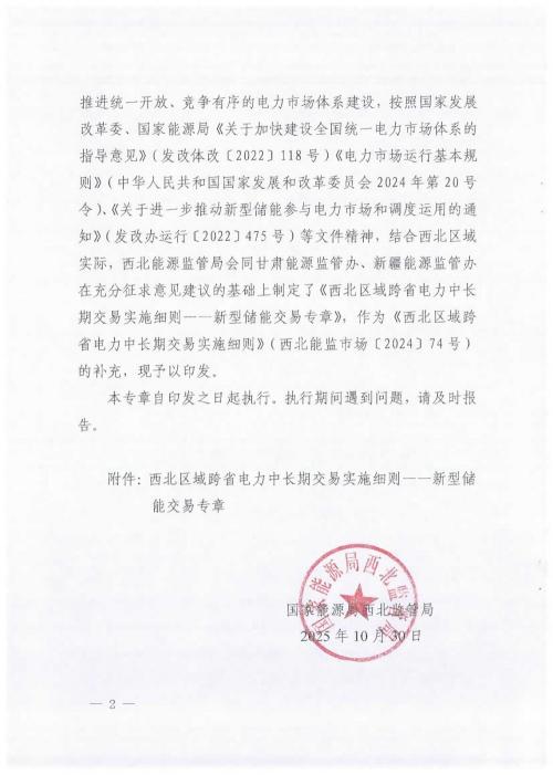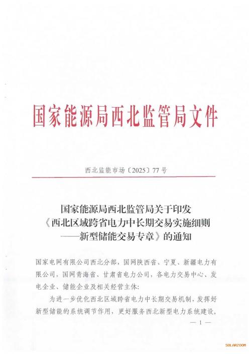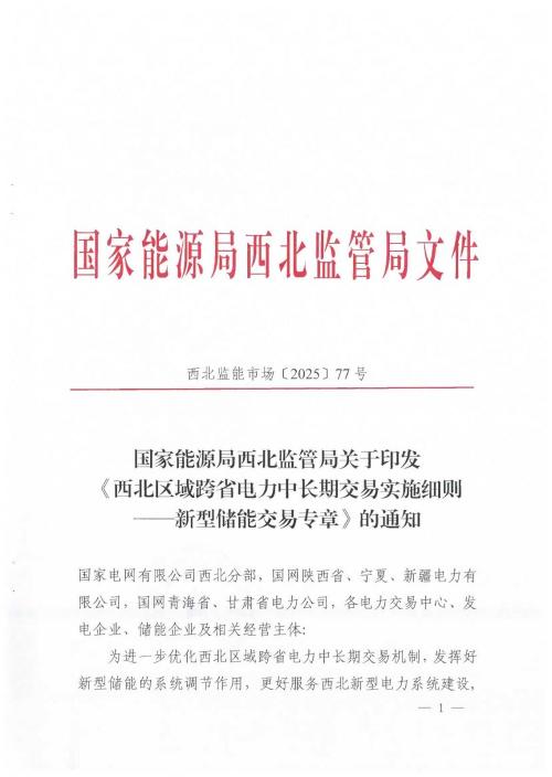 附件:西北监能市场〔2025〕77号-国家能源局西北监管局关于印发《西北区域跨省电力中长期交易实施细则——新型储能交易专章》的通知.pdf
