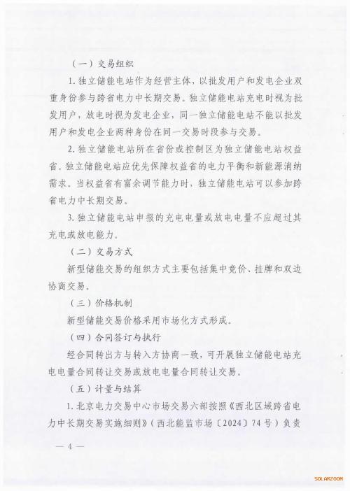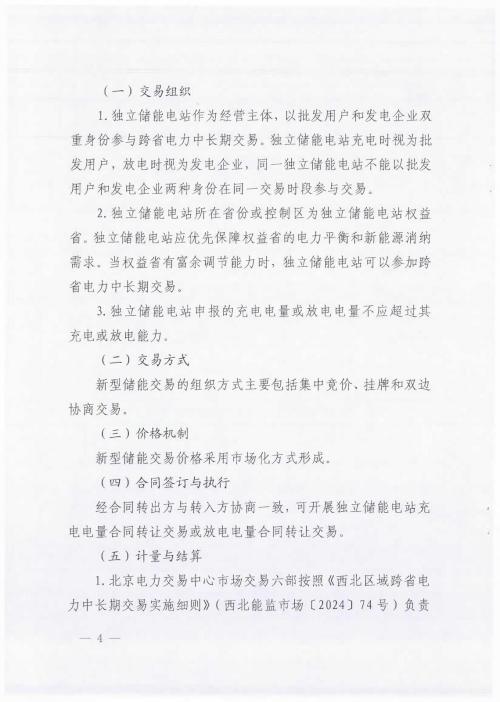 新型储能交易是西北区域跨省电力中长期交易的组成部分,由电力交易机构在电力交易平台按照年(多年)、月(多月)、月内(旬、周、日滚动)等周期组织开展。