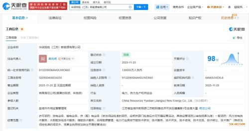 企查查APP显示,近日,华能(诏安)光伏发电有限责任公司成立,法定代表人为胡瑛,经营范围包含发电业务、输电业务、供(配)电业务;热力生产和供应;储能技术服务;风力发电技术服务等。企查查股权...