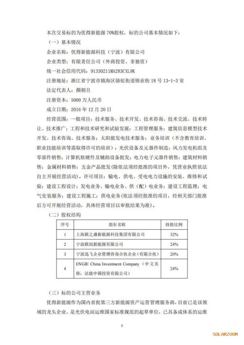 公告显示,优得新能源作为国内首批第三方新能源资产运营管理服务商,目前已是该领域的龙头企业,是光伏电站运维国家标准规范的起草单位,已具备成体系的运维6服务中心、运维工程师及自主研发的UniCare智能管理平台,主营各类新能源资产运营管理服务(含光伏、风电、储能、电气综合运维)。已在全国设立超100个县市级运维中心,服务网络覆盖华东、华南等高电价区域。历史运维电站规模超2.000座,累计容量逾10GW,行业地位稳固。