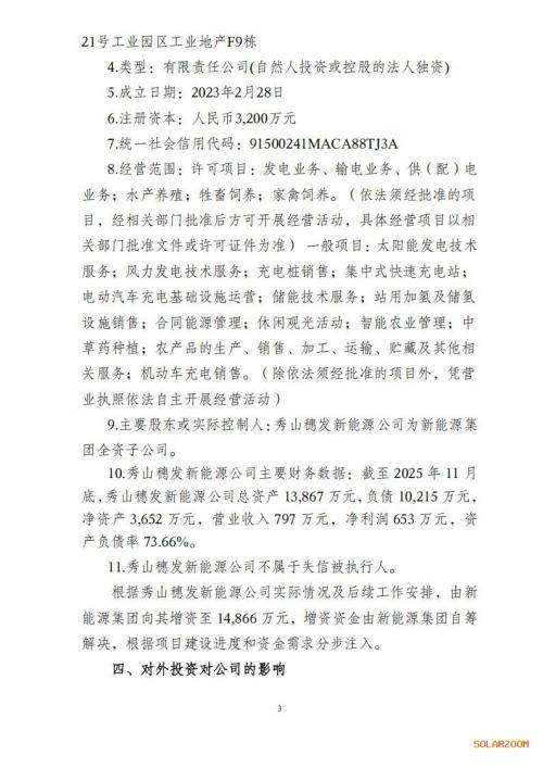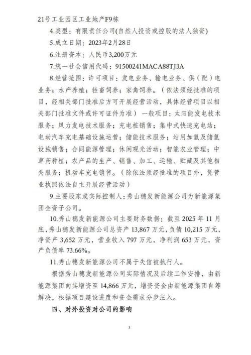 根据公告,为优化公司新能源产业布局,在西南地区打造新能源百万基地,助推新能源产业高质量发展,广州发展属下全资子公司广州发展新能源集团股份有限公司(简称“新能源集团”)拟投资建设秀山龙凤坝光伏发电(二期)项目(简称“秀山二期项目”)。