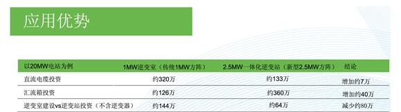 以20MW电站建设成本为例,应用2.5MW光伏水冷型一体化逆变站可节约成本约172万。