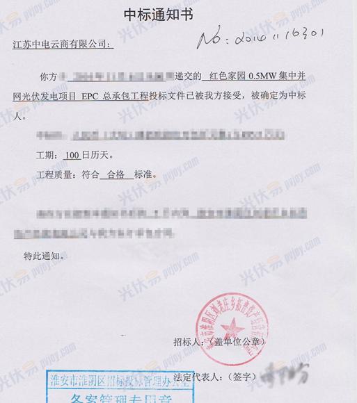 11月11日,光伏易成功中标淮安市淮阴区刘老庄红色家园0.5MW屋顶光伏发电示范项目。该项目由区经信委组织申报,经省经信委、省财政厅审核,并下文批准给予项目扶持资金500万元。