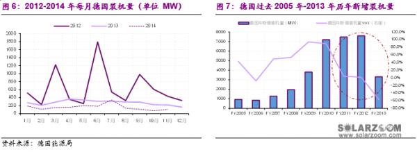 电站收益率下降以后,德国的装机量连创新低,2014年10月份创下历史新低,仅75.4MW。
