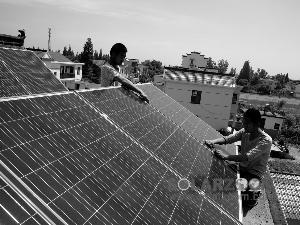 当天上午,合肥一家光伏设备生产厂家将发电设备送到犁桥村钟红斌家,由工程技术人员小夏带领几名助手爬上房顶完成安装。记者在现场看到,房顶上的光伏发电设备类似于太阳能热水器,1米times1.6米规格的12块多晶板面对太阳排成三列,平屋顶、斜屋顶均可放置。小夏说,只要不是阴云密布,每天都能发电,而夏天发电量是冬天的1.5倍。