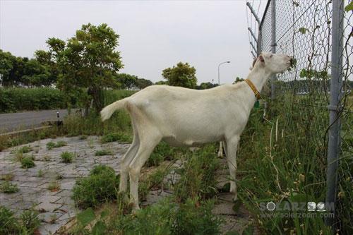 27日的公开中,山羊用长约3m的绳子拴着,在限制可移动范围的情况下在外周走动。绳子拴在围栏上,山羊可在周围活动,大嚼食包含藤蔓植物在内的杂草。