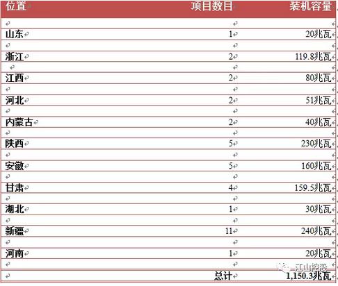 江山控股截至2016年12月31日持有已建成及并网之光伏发电站一览表: