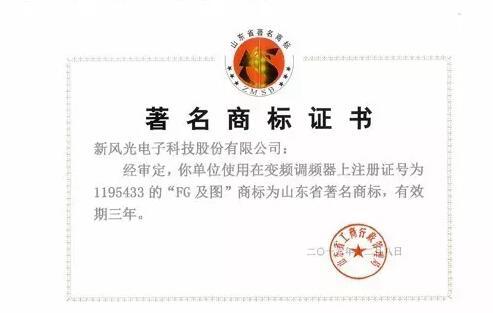 日前,新风光电子科技股份有限公司收到山东省著名商标证书,由新风光公司注册的“FG”商标顺利通过省工商行政管理局复审,再次被认定为山东省著名商标。