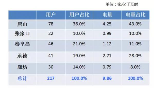 冀北地区准入电力用户227家,本次交易217家参与,10家未参与。参与交易的347个用电单元地区分布及电压等级情况如下。