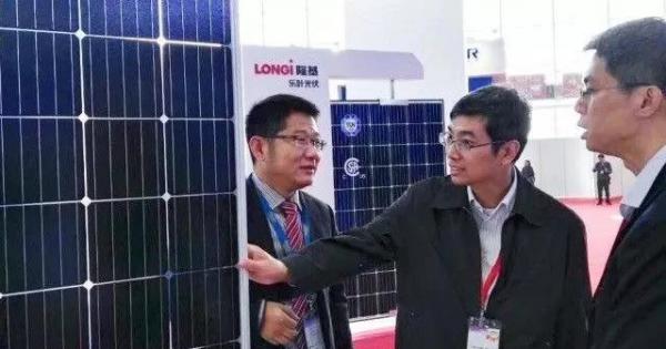 展会现场,国家能源局新能源处处长熊敏峰、中国光伏行业协会副秘书长王世江莅临隆基展台,进行参观指导,并对当前颇有人气的Hi-MO2单晶PERC双面组件的优质性能进行深入了解。对高效率、高可靠、高收益的PERC双面组件表示赞赏。隆基乐叶董事长助理、市场部总监王英歌先生向两位领导详细介绍了Hi-MO2单晶PERC双面组件高效率和低衰减的优势。王英歌表示隆基乐叶将在提高效率降低成本的道路上不断前行,助力青山绿水,用光伏引领绿色生活。
