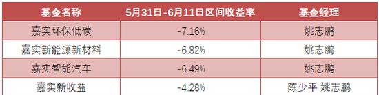 上述基金是否在光伏新政前调仓尚不可知。但据Wind数据显示,5月31日-6月11日期间,除嘉实主题新动力之外,嘉实环保低碳、嘉实新能源新材料、嘉实智能汽车、嘉实新收益4只基金净值波动明显,区间收益率分别为-7.16%、 -6.82%、 -6.49%、 -4.28%。