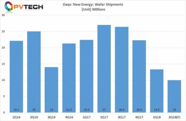 尽管季节性因素起到了一定作用,但自2017年四季度以来,大全的需求量急剧下降。 2017年二季度硅片出货量达到最高值,为2700万片。