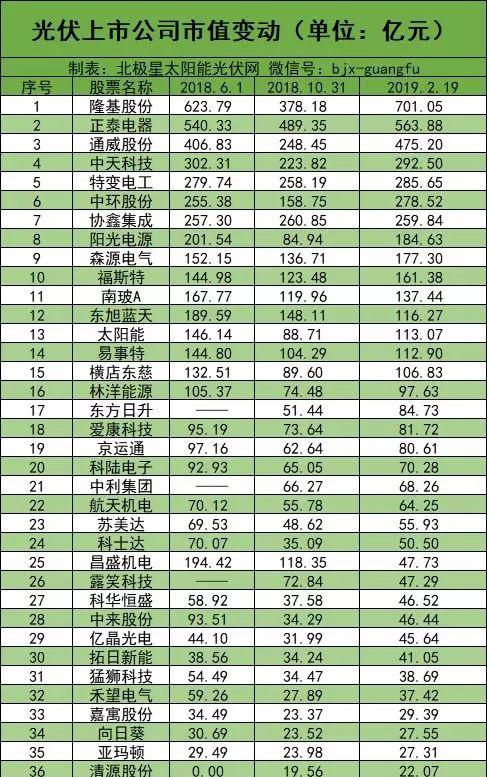 市值排名前十的企业还有正泰电器、通威股份、中天科技、特变电工、中环股份、协鑫集成、阳光电源、森源电气、福斯特。