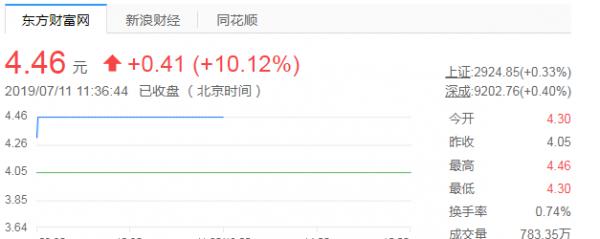 受此消息影响,今日早盘公司股价高开直线拉涨停。现报4.45元,涨10.12%,最新总市值65.72亿元。
