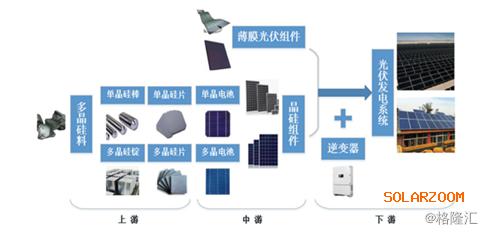 投资机会方面,光伏产业链结构分为上中下游三个层次,上游以硅产品为主,中游以电池及组件厂商为主,下游主要为逆变器及光伏发电系统。