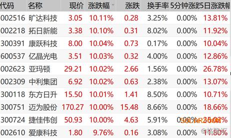 今日光伏概念迅速“蹿红”,迎来大爆发。截至收盘,板块指数大涨3.76%,版块内包含旷达科技(002516.SZ)、拓日新能(002218.SZ)、康跃科技(300391.SZ)在内的数10只个股涨停,53只成分股中仅2家股价下挫,其余全面飘红。