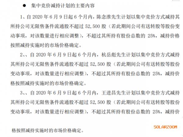 自2020年6月9日起6个月内,杭岳彪计划以集中竞价方式减持其所持公司无限售条件流通股不超过52,500股(若此期间公司有送转股等股份变动事项,对该数量进行相应调整),不超过其所持有股份总数的25%,减持价格按照减持实施时的市场价格确定。