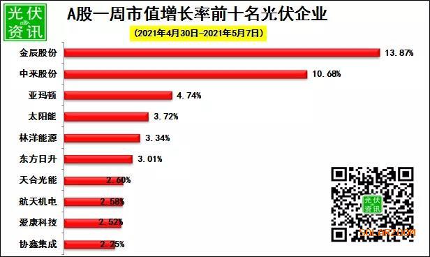 市值方面,隆基股份依然遥遥领先,总市值达到3739.96亿元,清源股份市值最低为21.90亿元。增长率方面,金辰股份本周上涨13.87%,中来股份本周上涨10.68%,居于增长前两位;本周负增长26家,最低为福莱特,增长率为-11.39%。