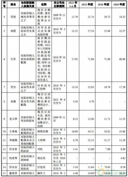例如,2020年2月,符黎明的婶婶钱爱琴辞任保洁员职务并从公司离职;2022年8月,符黎明母亲的堂妹尤立萍、符黎明堂弟符杰的配偶承瑶分别辞任财务部门职务,担任行政专员;2022年8月,符黎明的父亲符水林辞任采购部总监职务,担任厂务部总监,负责厂区建设及日常维护、厂务设施的日常运维和缺失排查整改、管控厂务系统费用等。