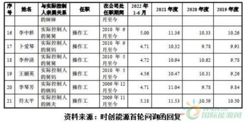 众多亲属在时创能源任职并领取薪酬,不仅胜任能力令人存疑,且可能导致该公司存在一定的内控治理风险。值得注意的是,财务岗位在企业中是关键岗位,由亲属担任可能会导致向实控人输送利益;采购岗位容易产生拿回扣、收受贿赂的现象,由亲属担任也可能会间接向实控人输送利益。