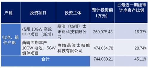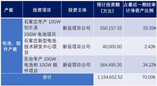 10月27日,公告投资8个亿,对邢台一车间5GW组件进行改造,投资7.6亿在合肥建设5GW组件,两项加起来15.6亿。