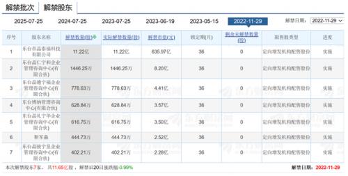 11月29日,晶澳科技发布《关于重大资产重组部分限售股份上市流通的提示性公告公告》,迎来自回归A股以来最大规模股份解禁,解禁数量为1,164,822,342股,占目前公司总股本的49.45%。